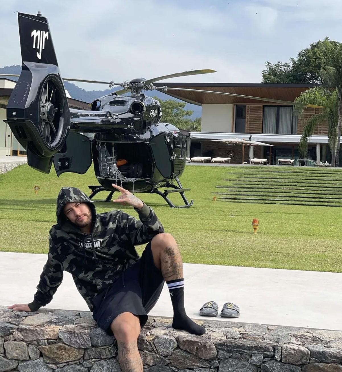 这架直升机由内马尔的公司于2019年购入,属于梅赛德斯机型,重达3.7吨,配备双涡轴发动机,并具备夜间自主飞行能力。机舱内部共有十个真皮座椅,并加上了蝙蝠侠的标志;机身和座椅上还刻有“NJR”(Neymar Jr)字样。内马尔在巴黎圣日耳曼效力期间就已频繁使用这架“蝙蝠直升机”,如今则把它带回了巴西。